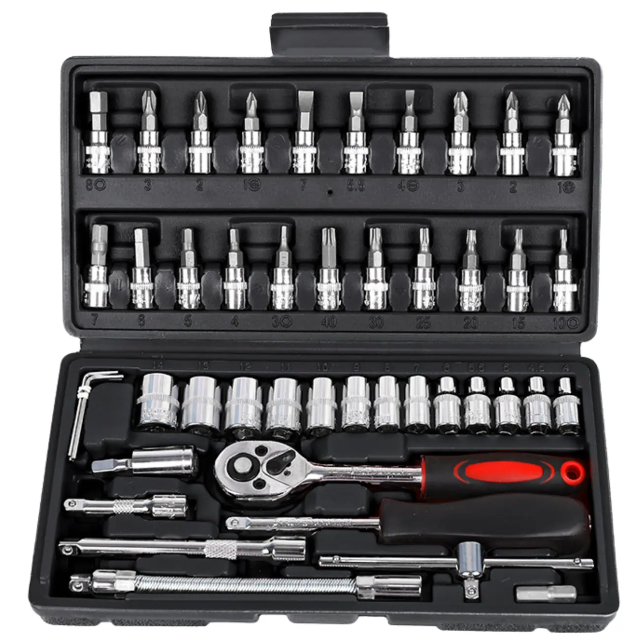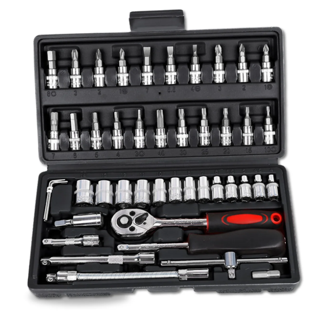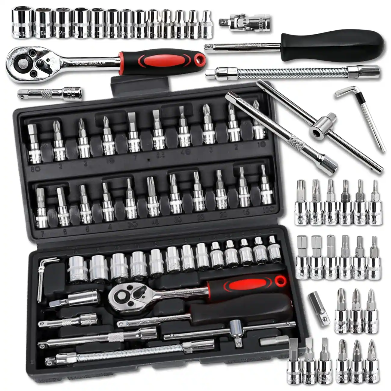 Profesjonalny zestaw kluczy nasadowych 46 sztuk to nieodzowny element wyposażenia każdego majsterkowicza – zarówno amatora, jak i profesjonalisty. Wykonany z wysokiej jakości stali, zapewnia niezawodność, trwałość oraz odporność na uszkodzenia mechaniczne. Ten zestaw nasadek stalowych z grzechotką i wieloma końcówkami wkrętakowymi sprawdzi się zarówno podczas drobnych napraw domowych, jak i w intensywnym użytkowaniu w garażu czy serwisie.
