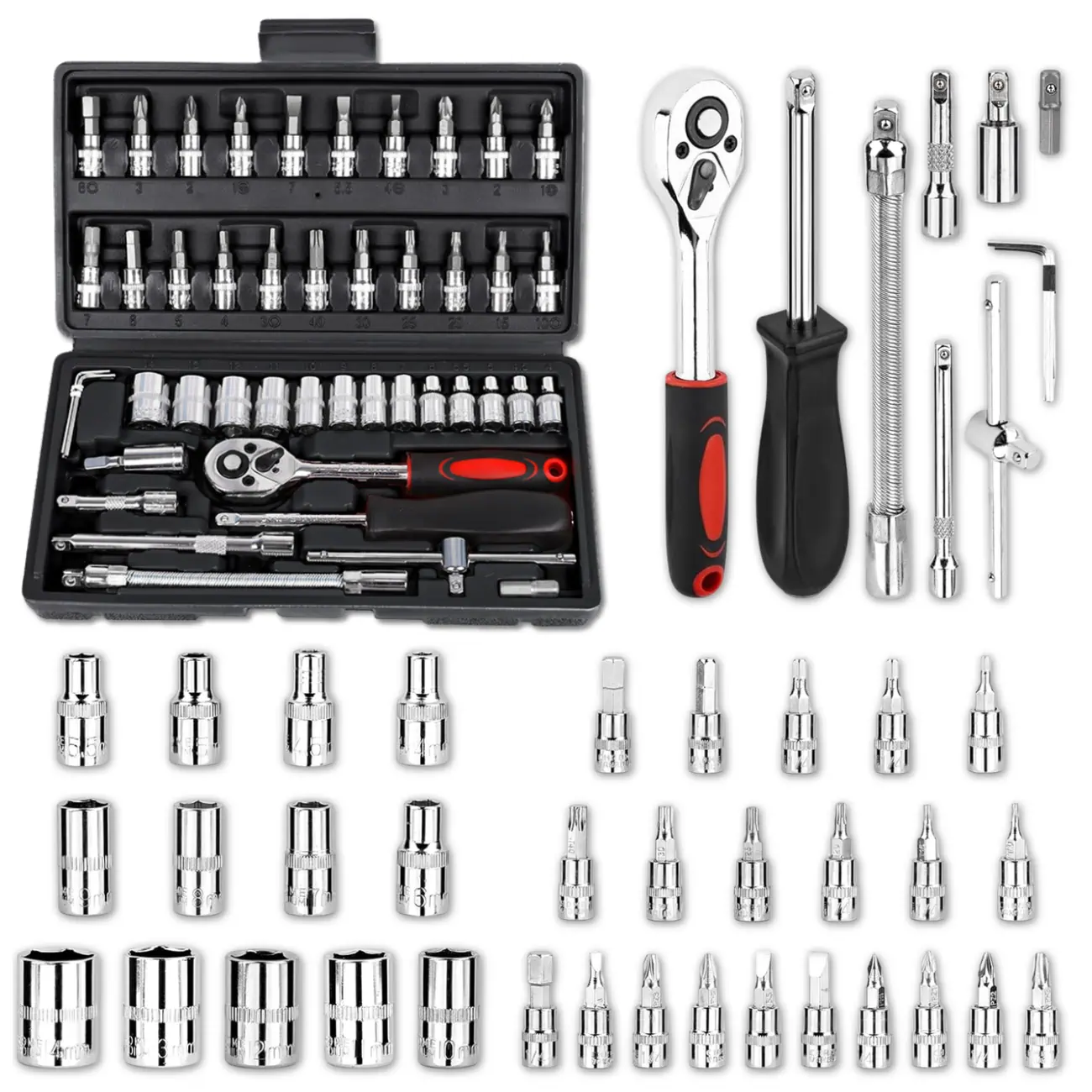 Zestaw nakładek 46szt nasadek stalowych klucze z grzechotką nasadowe